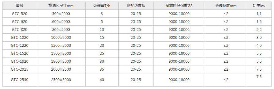 GTC型平板式高梯度磁選機(jī)主要適用于粒度5mm以下的弱磁性礦物的磁選及非金屬礦物的除鐵,如:云母粉、石英砂、鉀長石、霞石、螢石、硅線石、鋰輝石、高嶺土、錳礦、弱磁鐵礦、磁黃鐵礦、焙燒礦、鈦鐵礦、赤鐵礦、褐鐵礦、菱鐵礦、鈦鐵礦、鉻鐵礦、黑鎢礦、鉭鈮礦、赤泥等。也可用于煤、非金屬礦、建材等物料的除鐵作業(yè)。