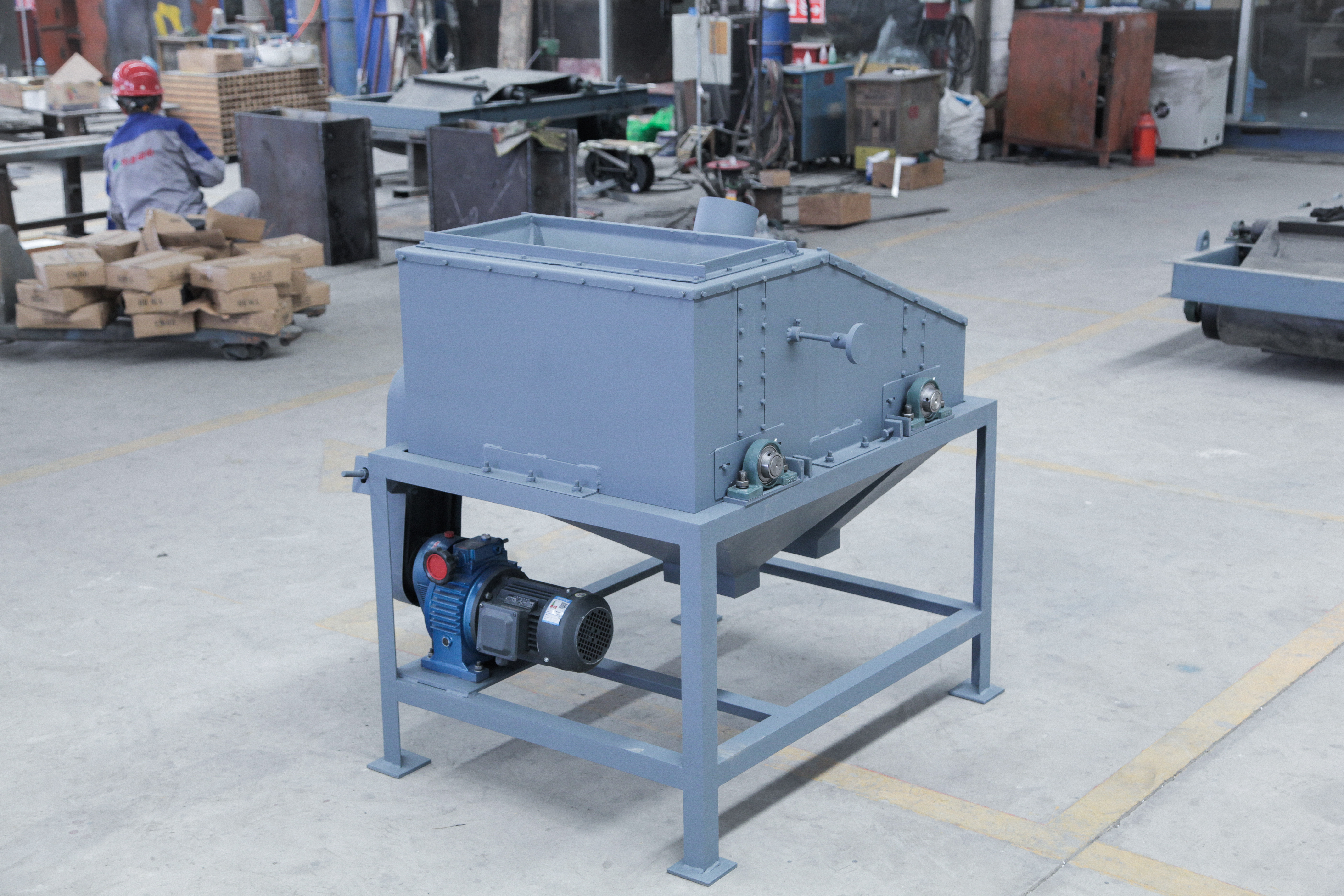 ◇設(shè)計入料系統(tǒng),使入料更均勻,定時定量隨時控制入料。簡單實用的自重式平膠帶張緊、糾偏機(jī)械裝置。