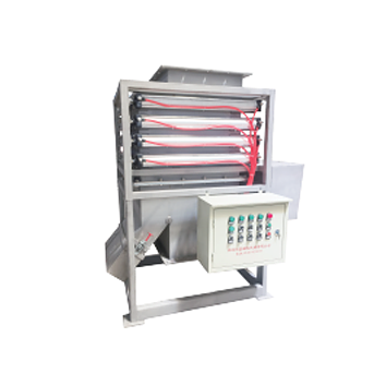 CQZ型全自動在線磁分離機安裝于流水線中以實現(xiàn)在線實時自動清除物料中的鐵質(zhì)。自動定時控制器可以設(shè)定為連續(xù)自動實時清理,也可根據(jù)鐵質(zhì)含量情況來設(shè)置清理時間間隔。其強大的磁場可以清除流動、干燥的、流動性好、粉狀的、細小顆粒中的鐵磁性物質(zhì)。二、示意圖