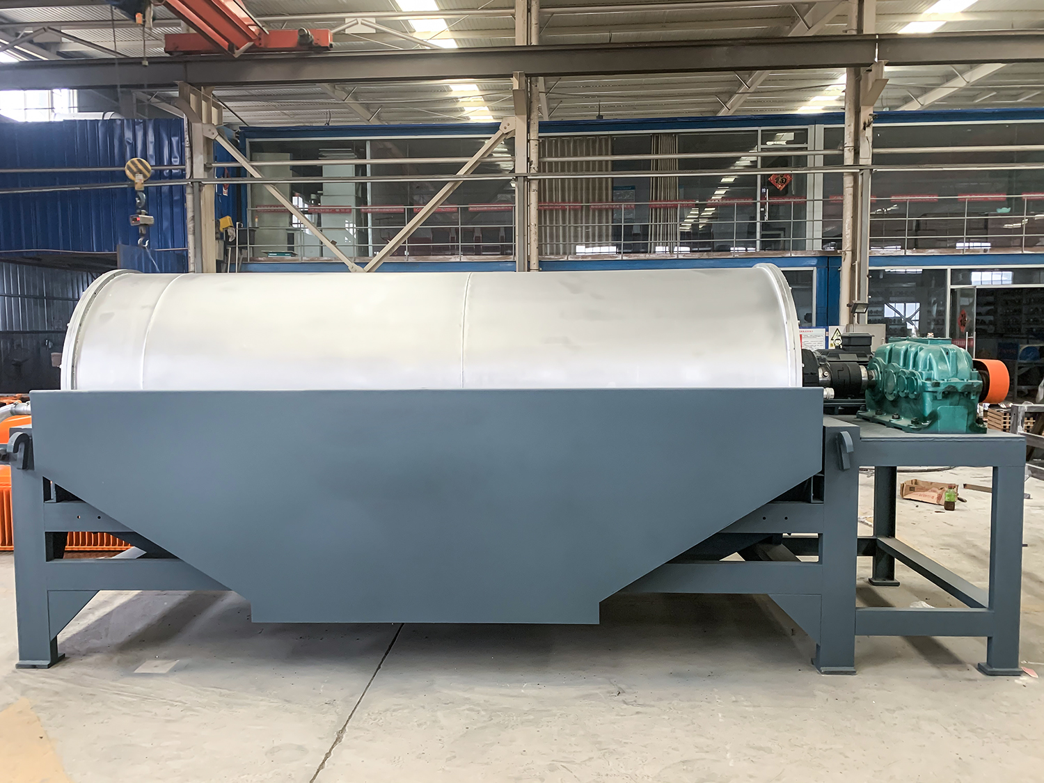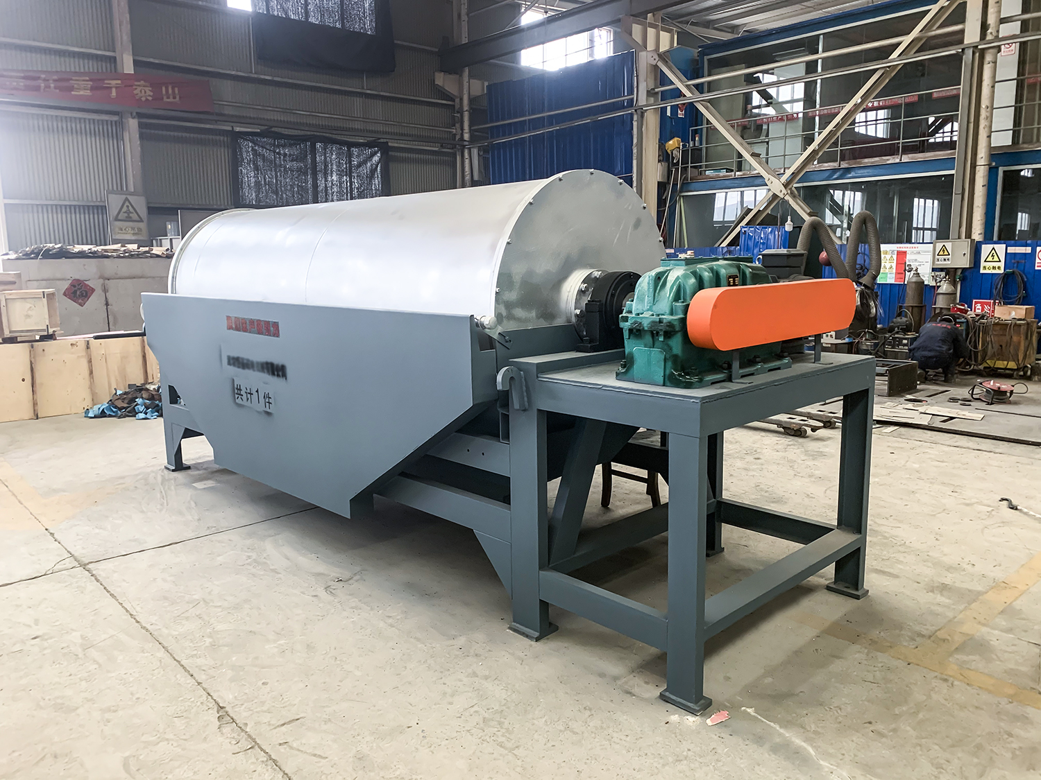 CTS型順流式濕式磁選機(jī)適用于濕式選別礦石粒度為6~0mm的較粗粒度強(qiáng)磁性物料的預(yù)選和精選,或者除去非磁性礦物中混雜的強(qiáng)磁性礦物。本機(jī)可以連續(xù)給礦和排礦,磁場(chǎng)強(qiáng)度大,磁場(chǎng)梯度高,工作間隙大,具有較高的處理能力。亦可多臺(tái)串連工作。二、示意圖